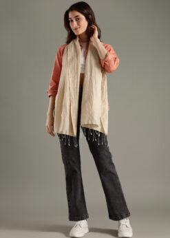Our wool scarves including Neha, Adha and wool-silk blend scarves including Smita, Nidhi and Richuta will make you stay warm during colder seasons. Renowned for their excellent insulation properties, wool scarves trap heat while remaining breathable, keeping you comfortably warm without overheating. Their natural moisture-wicking ability ensures dryness, even in damp conditions.