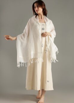 Our wool scarves including Neha, Adha and wool-silk blend scarves including Smita, Nidhi and Richuta will make you stay warm during colder seasons. Renowned for their excellent insulation properties, wool scarves trap heat while remaining breathable, keeping you comfortably warm without overheating. Their natural moisture-wicking ability ensures dryness, even in damp conditions.